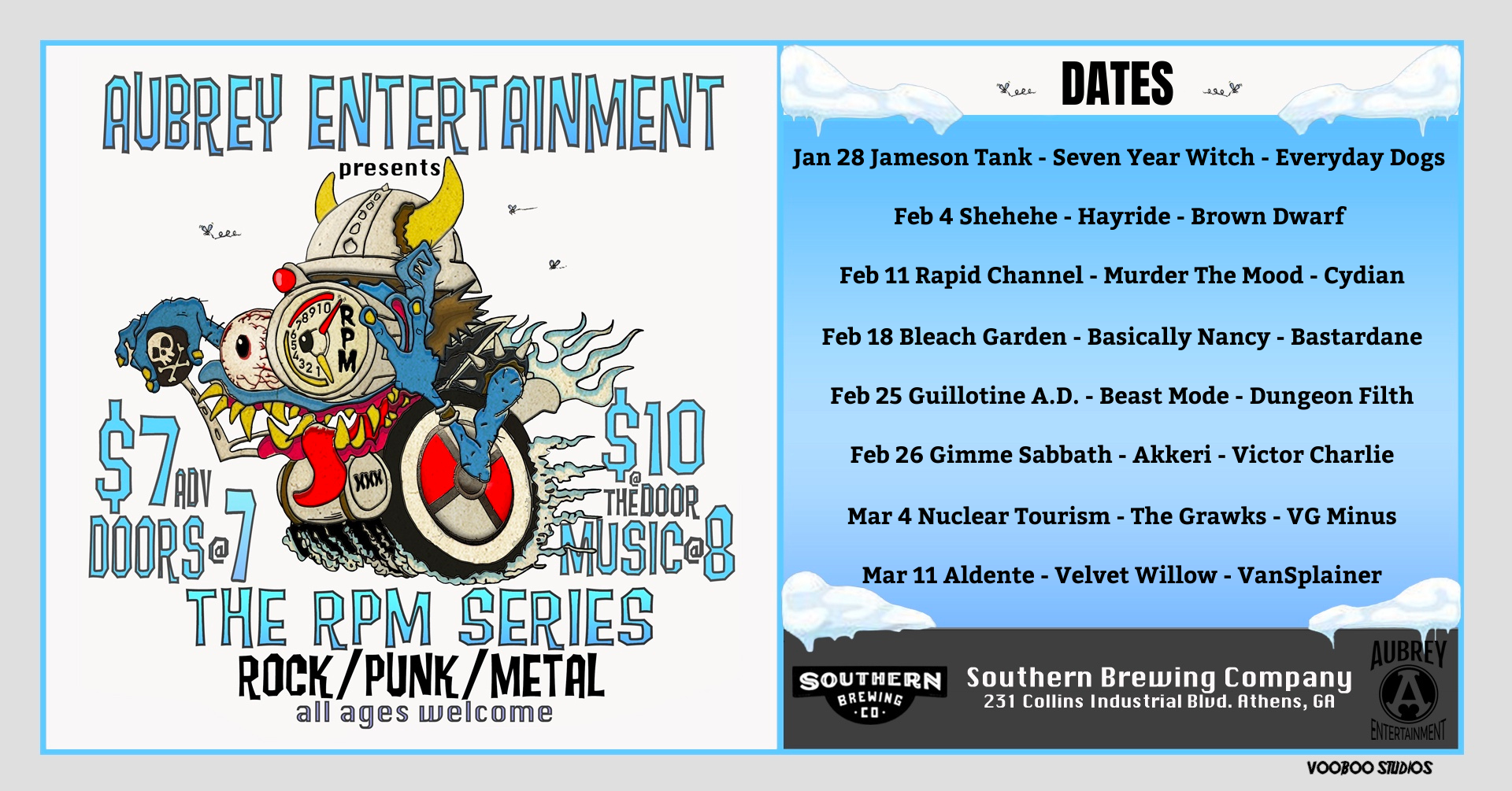 A new winter series presenting the best local and surrounding rock/punk/metal bands at Southern Brewing Company!